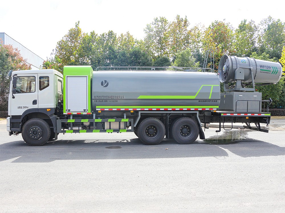 東風(fēng)華神 大型17方抑塵車-霧炮車產(chǎn)品介紹簡(jiǎn)述 抑塵車又稱為綠化噴灑車、多功能灑水車、園林綠化灑水車。抑 塵車適合于各種路面沖洗,樹(shù)木、綠化帶、草坪綠化,道路、廠礦企業(yè) 施工建設(shè),高空建筑沖洗。抑塵也可以作為運(yùn)水車使用,最常見(jiàn)的車 型有綠化噴灑車、多功能灑水車、綠化灑水車幾大類。 我公司產(chǎn)品標(biāo)配前噴(鴨嘴)、后沖、后灑、側(cè)噴、后置式工作 平臺(tái),平臺(tái)上配置綠化水炮(可 360°旋轉(zhuǎn),既可以調(diào)成柱狀,也可 以調(diào)成霧狀,更可以調(diào)成直沖狀、大雨、中雨、小雨、毛毛雨),配 備優(yōu)質(zhì)大功率專用灑水泵(可自吸自排,可從河里或池塘抽水到罐體), 取力器,雜物過(guò)濾網(wǎng),消防接口,自流球閥系統(tǒng)、取力器、球閥、濾網(wǎng) 均為國(guó)家標(biāo)準(zhǔn)產(chǎn)品,主管道加粗,法蘭墊、法蘭盤加厚,大通徑球閥。 整體具備性能優(yōu)良安全可靠、效率高、流量大、維修方便等特點(diǎn)。