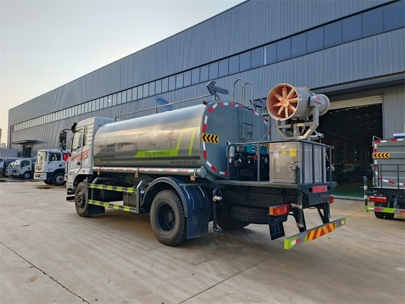 東風(fēng)12噸霧炮灑水車(chē)產(chǎn)品標(biāo)配前噴(鴨嘴)、后沖、后灑、側(cè)噴、后置式工作 平臺(tái),平臺(tái)上配置綠化水炮(可 360°旋轉(zhuǎn),既可以調(diào)成柱狀,也可 以調(diào)成霧狀,更可以調(diào)成直沖狀、大雨、中雨、小雨、毛毛雨),配 備優(yōu)質(zhì)大功率專(zhuān)用灑水泵(可自吸自排,可從河里或池塘抽水到罐體), 取力器,雜物過(guò)濾網(wǎng),消防接口,自流球閥系統(tǒng)、取力器、球閥、濾網(wǎng) 均為國(guó)家標(biāo)準(zhǔn)產(chǎn)品,主管道加粗,法蘭墊、法蘭盤(pán)加厚,大通徑球閥。 整體具備性能優(yōu)良安全可靠、效率高、流量大、維修方便等特點(diǎn)
