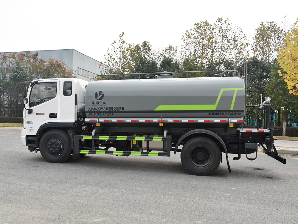 湖北盈通灑水車產(chǎn)品標(biāo)配前噴(鴨嘴)、后沖、后灑、側(cè)噴、后置式工作 平臺(tái),平臺(tái)上配置綠化水炮(可 360°旋轉(zhuǎn),既可以調(diào)成柱狀,也可 以調(diào)成霧狀,更可以調(diào)成直沖狀、大雨、中雨、小雨、毛毛雨),配 備優(yōu)質(zhì)大功率專用灑水泵(可自吸自排,可從河里或池塘抽水到罐體), 取力器,雜物過(guò)濾網(wǎng),消防接口,自流球閥系統(tǒng)、取力器、球閥、濾網(wǎng) 均為國(guó)家標(biāo)準(zhǔn)產(chǎn)品,主管道加粗,法蘭墊、法蘭盤加厚,大通徑球閥。 整體具備性能優(yōu)良安全可靠、效率高、流量大、維修方便等特點(diǎn)。