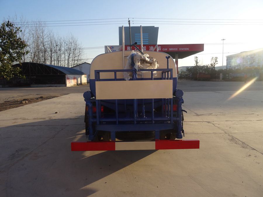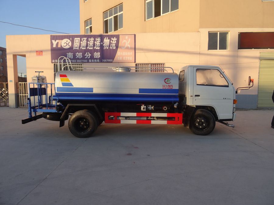 改裝配置:罐體采用4mm厚武鋼專用容積板制作,實際容積5立方,罐內隔板具有防波作用,以減低汽車行駛時罐體液體的沖擊。泵 進泵出,消防栓接口,前沖、后灑、側噴、后工作平臺帶綠化水炮,垂直吸程≧7米,灑水寬度≧14-16米,射程≧20-25米,引水時 間<5min,流量90m3/h。自流閥、濾網(wǎng)、帶自吸自排功能。兩根等長輸水管,金屬漆,其余標配。可加裝藥盤、氣動控制閥、噴藥設備、非車帶泵動力等。