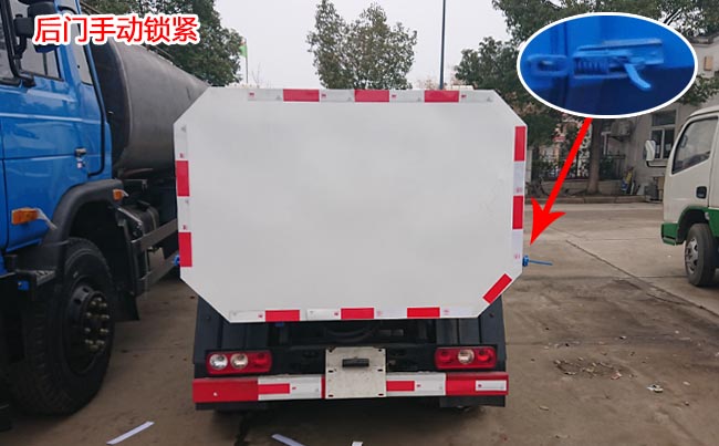 箱體容積3~4立方米,采用邊三底四材質(zhì),可雙杠液壓舉升卸料,后蓋可手動(dòng)打開(kāi),右側(cè)裝掛桶提升機(jī)構(gòu),采用國(guó)產(chǎn)液壓系統(tǒng)、油泵、多路閥、油缸。