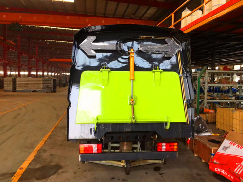 2、掃路車采用吸掃結(jié)合的收集,濕式除塵、電液控制液壓傾翻卸料的作業(yè)對路面進行清掃業(yè)。