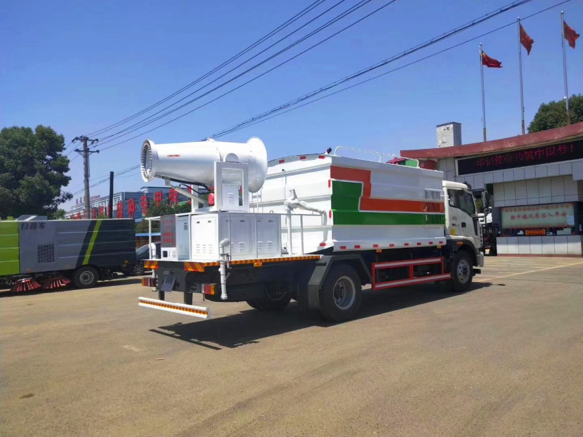 治霾神器“霧炮車”的全稱為多功能抑塵車,是在原有的灑水車基礎(chǔ)上,增添了遠(yuǎn)距離噴霧抑塵的功能,對(duì)治理工業(yè)生產(chǎn)、汽車尾氣、秸稈燃燒等產(chǎn)生在空氣中的細(xì)小懸浮顆粒有顯著的效果。應(yīng)用場(chǎng)景:多用于煤礦、礦石堆場(chǎng)的粉塵治理,主要作用是噴霧抑塵,同時(shí)具備灑水和道路沖洗功能。該車實(shí)用性很強(qiáng),既可以在原料料場(chǎng)進(jìn)行除塵、灑水、道路清洗等作業(yè),也可以在火車、汽車運(yùn)送礦粉等粉塵狀物品時(shí),對(duì)每節(jié)車皮或車廂上的粉塵狀物料噴灑抑塵劑,形成保護(hù)膜,減少粉塵飛揚(yáng)產(chǎn)生的污染?蓢娚120米遠(yuǎn)、70米高的水霧,水霧顆粒極為細(xì)小,在霧霾天氣可以進(jìn)行液霧降塵、分解淡化空氣中的顆粒濃度、將漂浮在空氣中的污染顆粒物迅速逼降地面,達(dá)到清潔凈化空氣的效果。