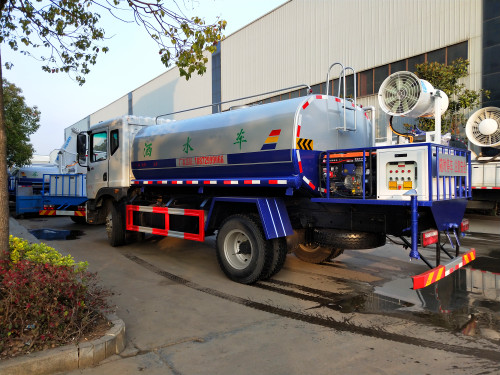灑水車有前沖、后灑、側(cè)噴、后操作平臺帶有高壓水槍;可呈大雨、中雨、小雨、毛雨、霧狀。