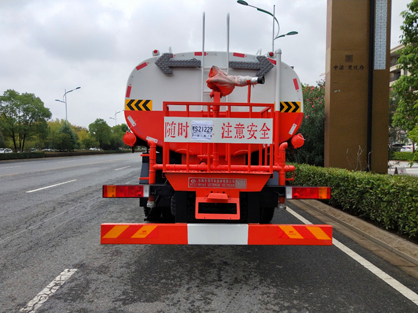 ★配置及功能介紹:東風(fēng)原廠底盤,國(guó)標(biāo)優(yōu)質(zhì)4mm碳鋼板罐體;配備優(yōu)質(zhì)高效專用灑水泵,可實(shí)現(xiàn)前沖(噴)、后灑、側(cè)噴等多種功用。罐體前方安裝視水管,可實(shí)時(shí)觀測(cè)水量;罐體后方加裝帶安全護(hù)欄的工作平臺(tái),可操控綠化灑水炮旋轉(zhuǎn)作業(yè),水量可調(diào)節(jié)為柱狀、霧狀等;該車可通過水泵自吸自排、消防接口進(jìn)水、人孔口取水,罐體底部帶自流閥,可將罐體存水排放干凈。