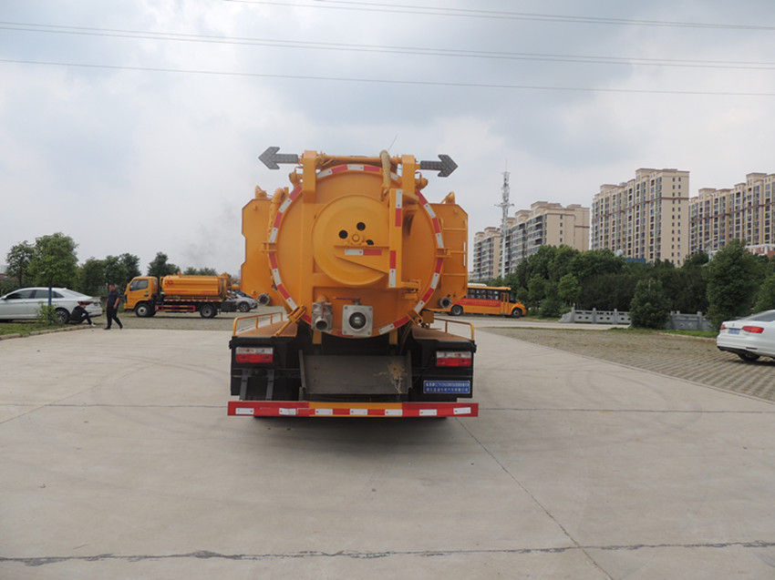 東風清洗吸污車清洗部分:清洗罐采用5mm武鋼碳鋼制作,容積約2.7方,帶視水管,安裝德國品孚高壓清洗泵,壓力22Mpa,流量215L/min,帶60米內(nèi)徑19mm清洗鋼絲軟管,標配十個不同口徑合金噴頭,卷管力為1800N,卷管速度0-25m/min,推進力度大于180N,可通直徑10-80公分水管及下水道管道。