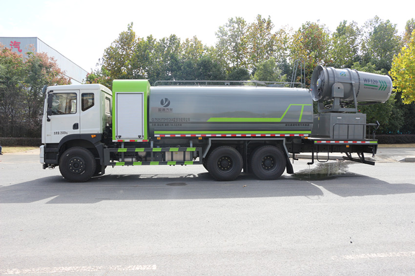 東風(fēng)17方大型霧炮灑水車簡(jiǎn)述 抑塵車又稱為綠化噴灑車、多功能灑水車、園林綠化灑水車。抑 塵車適合于各種路面沖洗,樹木、綠化帶、草坪綠化,道路、廠礦企業(yè) 施工建設(shè),高空建筑沖洗。抑塵也可以作為運(yùn)水車使用,最常見的車 型有綠化噴灑車、多功能灑水車、綠化灑水車幾大類。 我公司產(chǎn)品標(biāo)配前噴(鴨嘴)、后沖、后灑、側(cè)噴、后置式工作 平臺(tái),平臺(tái)上配置綠化水炮(可 360°旋轉(zhuǎn),既可以調(diào)成柱狀,也可 以調(diào)成霧狀,更可以調(diào)成直沖狀、大雨、中雨、小雨、毛毛雨),配 備優(yōu)質(zhì)大功率專用灑水泵(可自吸自排,可從河里或池塘抽水到罐體), 取力器,雜物過濾網(wǎng),消防接口,自流球閥系統(tǒng)、取力器、球閥、濾網(wǎng) 均為國(guó)家標(biāo)準(zhǔn)產(chǎn)品,主管道加粗,法蘭墊、法蘭盤加厚,大通徑球閥。 整體具備性能優(yōu)良安全可靠、效率高、流量大、維修方便等特點(diǎn)。