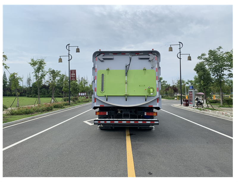 1. 采用吸掃結合的方式收集垃圾,濕式除塵、電液控制,液壓傾翻卸料的作業(yè)方式對路面進行清掃作業(yè)。