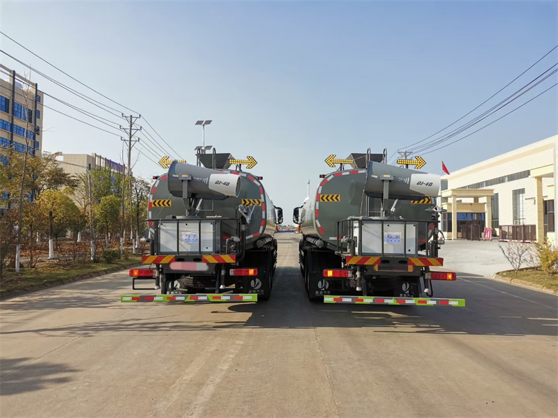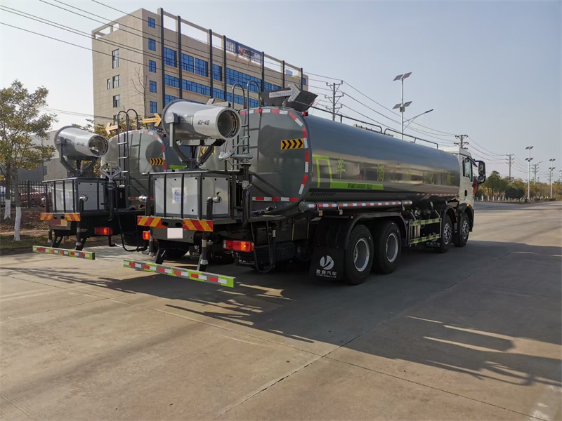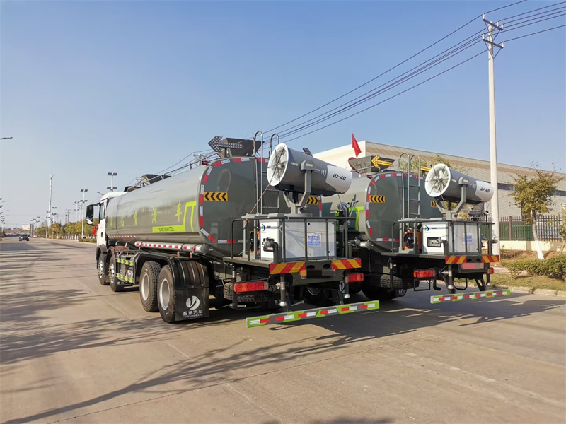 縱昂牌CLT5311TDYZZ6型多功能抑塵車標(biāo)配前噴(鴨嘴 ) 、后 對(duì)沖、后灑、側(cè)噴、后置式工作平臺(tái),平臺(tái)上配置綠化水炮(可 360°旋 轉(zhuǎn), 既可以調(diào)成柱狀,也可以調(diào)成霧狀),配備優(yōu)質(zhì)大功率專用灑水泵(可自吸 自 排,可從河里或池塘抽水到罐體),取力器,雜物過濾網(wǎng),消防接口,自流球閥 系統(tǒng)、取力器、球閥、濾網(wǎng)均為國(guó)家標(biāo)準(zhǔn)產(chǎn)品,主管道加粗,法蘭墊、法蘭盤 加厚,大通徑球閥。整體具備性能優(yōu)良安全可靠、效率高、流量大、維修方便 等特點(diǎn)。