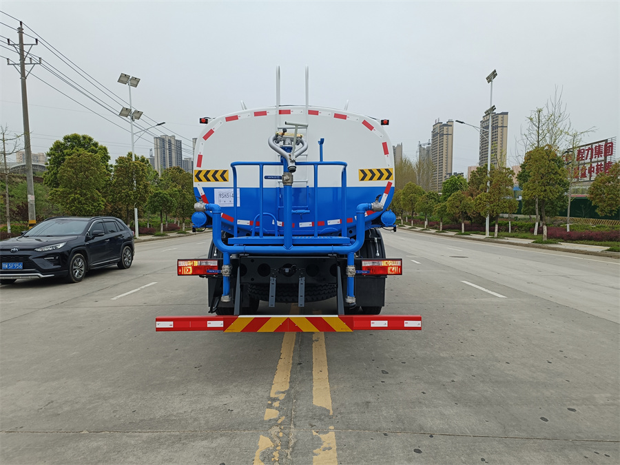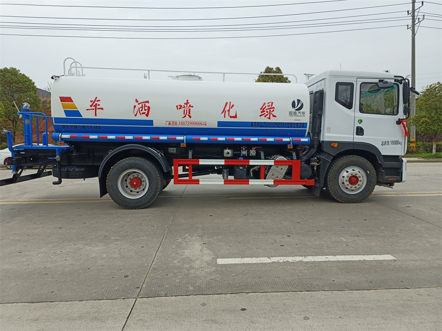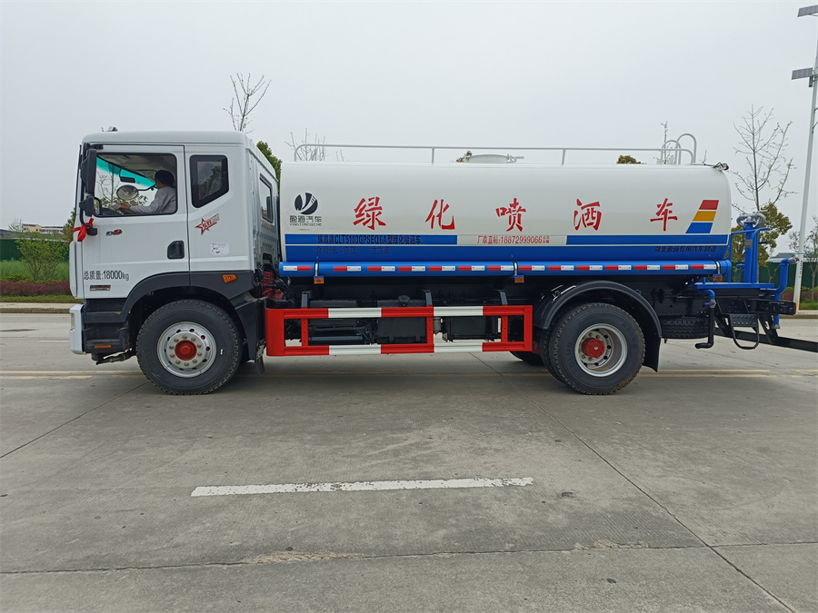 灑水車產品標配前噴(鴨嘴)、后沖、后灑、側噴、后置式工作 平臺,平臺上配置綠化水炮(可 360°旋轉,既可以調成柱狀,也可 以調成霧狀,更可以調成直沖狀、大雨、中雨、小雨、毛毛雨),配 備優(yōu)質大功率專用灑水泵(可自吸自排,可從河里或池塘抽水到罐體), 取力器,雜物過濾網,消防接口,自流球閥系統(tǒng)、取力器、球閥、濾網 均為國家標準產品,主管道加粗,法蘭墊、法蘭盤加厚,大通徑球閥。 整體具備性能優(yōu)良安全可靠、效率高、流量大、維修方便等特點。