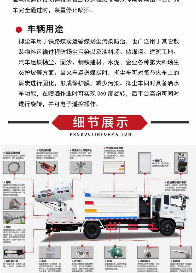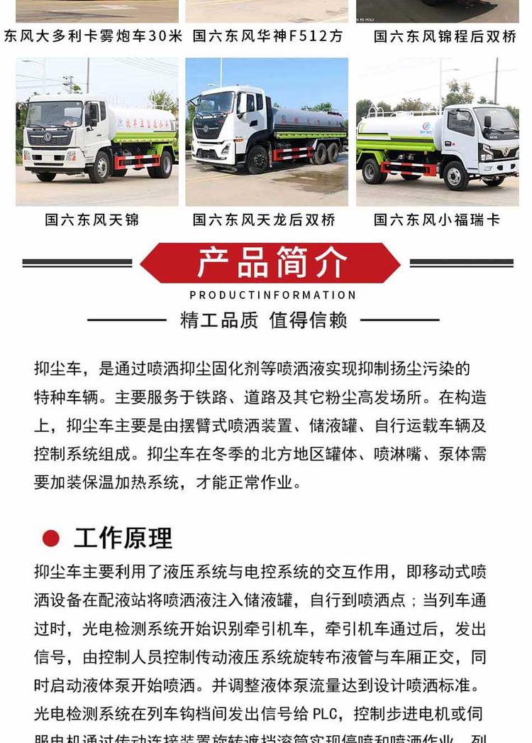 灑水車性能簡介:吸程≧7米,灑水寬度≧14-16米,射程≧25-40米,引水時間<5min,流量60m3/h。前沖(噴)、后灑、帶側(cè)噴(花灑)、帶后工作平臺、平臺上安裝綠化灑水高炮(炮噴射形狀可調(diào)節(jié):直沖、大雨、中雨、毛毛雨、霧狀、可連續(xù)調(diào)節(jié),360°旋轉(zhuǎn)),配消防接口,自流閥,濾網(wǎng),帶自吸自排功能。