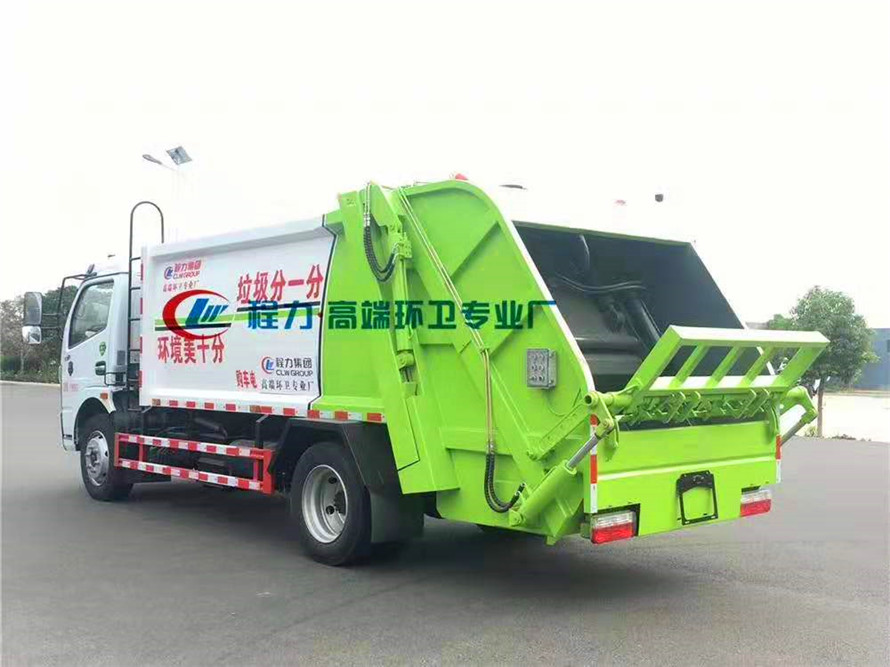 新款平面弧形廂體,廂體材料為武鋼優(yōu)質(zhì)碳鋼,外箱尺寸:7340×2350×2800mm,有效壓縮容積8立方,采用邊四底四優(yōu)質(zhì)鋼板制作,國內(nèi)知名品牌博利液壓油缸,杰特油管,揚州中梅多路閥,皖液齒輪油泵,西門子PLC電控開關(guān)。壓縮式垃圾車采用機電液一體化技術(shù),借助機、電、液聯(lián)合自動控制系統(tǒng)、電腦控制、手動操作系統(tǒng),通過填裝器和推鏟等專用裝置,實現(xiàn)垃圾倒入、壓碎或壓扁、強力裝填,把垃圾擠入車廂并壓實和推卸,污水全部進入污水收集箱,解決了垃圾運輸過程中的二次污染的問題。壓縮式垃圾車具有自動反復(fù)壓縮以及蠕動壓縮功能,壓縮比高、密封性好、裝載量大﹑操作方便、環(huán)保性好﹑整車利用功率高等優(yōu)點。