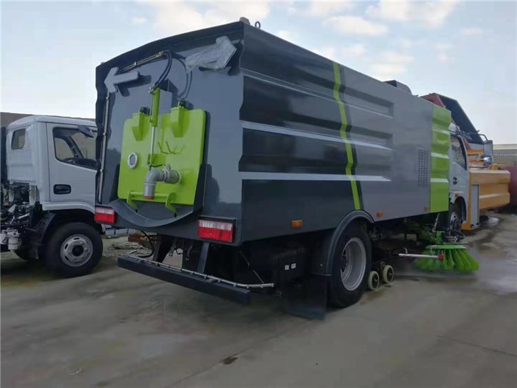 洗掃車專用性能參數(shù):垃圾箱容積( m3 )4.5、清水箱容積( m3 ) 4、清掃寬度(mm) 2800-3200、清掃作業(yè)速度(km/h)3-15、保潔作業(yè)速度(km/h)15-20、清掃能力(m2/h)48000、抽吸能力密度(g/cm3) 2.0、質(zhì)量(kg) 1.5、抽吸粒度(mm)≥100、垃圾廂傾卸角≥45°、清掃效率≥96%、作業(yè)噪聲(db) < 88 符合GB7258規(guī)定、行駛性能參數(shù):驅(qū)動型式 4×2后軸驅(qū)動、懸架型式鋼板彈簧、鋼板彈簧片數(shù)(前/后) 8/10+7、制動型式雙回路氣壓制動、鼓式、制動距離(滿載30km/h)≤10m、車速(km/h)99、轉(zhuǎn)彎半徑(m) 8、爬坡度≥30%、離合器系統(tǒng)、單片干式膜片彈簧離合器,液壓操縱、變速器系統(tǒng) 機械式5檔變速器,帶同步器,手動、發(fā)動機耗油量行駛(L/100km)、作業(yè)(L/h)作業(yè)(L/10000m2)、≤12≤6≤3、降塵系統(tǒng)噴水形式低壓霧狀、主要元件組成德國進口高壓泵、水過濾器、管路、不銹鋼噴架、高壓噴嘴等、高壓水泵德國進口、安裝位置清掃降塵、左右前掃盤、吸塵降塵、吸盤吸風(fēng)口內(nèi)、控制型式、電子控制、一鍵操作、液壓系統(tǒng)型式開放式、電動控制集中操縱、主要元件齒輪泵、擺線馬達、液壓缸、電磁閥、集成塊、高壓泵等、擺線馬達日本三洋、齒輪油泵長源機械、液壓油缸匯博液壓油缸、液壓缸密封件臺灣鼎基、液壓油管廣州天河、電磁閥組海普瑞斯(中意合資)、防震壓力表德國IMT、回油過濾器上海索菲瑪、系統(tǒng)溢流壓力Mpa10-12、液壓油箱容積L≥60、電器系統(tǒng)系統(tǒng)組成由底盤車電路和副發(fā)動機電氣部分及專用工作裝置操作控制電路組成。底盤車系統(tǒng)電壓(V)24、工作裝置系統(tǒng)電壓(V)12、電控箱面板組成 副機轉(zhuǎn)速表、副機水溫表、機油溫度報警裝置、各種操作控制開關(guān)、控制開關(guān)上海施耐德(中法合資)、可編程序邏輯控制器日本歐姆龍、斷路器德國海格、蓄電池型號12V-70A.H (2只并聯(lián))、風(fēng)機系統(tǒng)型式專用高壓離心風(fēng)機、品牌洛陽北坡風(fēng)機、額定工作轉(zhuǎn)速r/min2700、傳動型式副發(fā)動機、離合器、帶齒耐高溫A帶傳動(4根)、風(fēng)機皮帶浙江三力士、自動離合器離心式,進口材質(zhì),質(zhì)保兩年,使用壽命可達2萬工作小時、風(fēng)量(m3/h) 5000 ~ 7800。