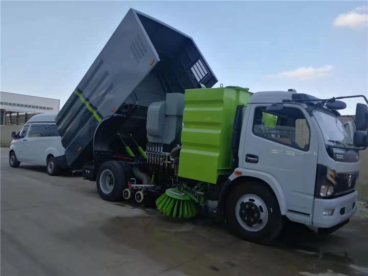 東風(fēng)多利卡洗掃車采用洗,掃,吸,混合的方式收集垃圾,濕式除塵、電液PLC一鍵控制,液壓傾翻卸料的作業(yè)方式對路面進行清掃作業(yè)。采用副發(fā)動機專門驅(qū)動風(fēng)機和液壓系統(tǒng),保證行駛過程中能繼續(xù)工作,保證清掃過程的連續(xù)性。采用“中置兩掃盤 +噴霧降塵+中置寬幅吸嘴(內(nèi)置高壓噴桿及兩側(cè)高壓噴桿)的結(jié)構(gòu)布局,對泥濘路面有更好的清潔效果,清掃過程中砂石不在飛濺揚塵,此布局便于清掃裝置與吸盤的調(diào)整與維護,轉(zhuǎn)場作業(yè)時整車通過性好。副發(fā)動機與風(fēng)機之間的傳動設(shè)置設(shè)有自動離合器,可保證副發(fā)動機空載啟動和停機時與風(fēng)機的自動脫離,降低了對副發(fā)動機的沖擊,提高了副發(fā)動機的工作可靠性和使用壽命。掃盤有遇障礙自動避讓保護功能和自動復(fù)位功能,遇到障礙自動回縮,越過障礙自動回位。掃盤轉(zhuǎn)速可根據(jù)各種不同的清掃工況來調(diào)整轉(zhuǎn)速,能保證在各種污染狀況下都有良好的清掃效果采用先進,的專用風(fēng)機和可隨路面自動找平的全浮動式吸嘴,清掃效果好,使用壽命長。