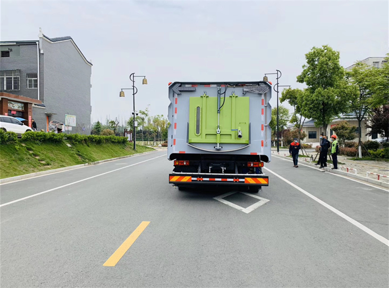 東風(fēng)18噸洗掃車,帶2個中置掃盤,天錦為康明斯170馬力副發(fā)動機;三洋馬達(dá);高壓水泵(前沖/側(cè)噴/中噴/后噴霧/沖洗水槍/垃圾箱自潔裝置);高壓路沿清洗噴頭,低壓泵(前沖);不銹鋼垃圾箱;控制器;控制箱;PLC一鍵控制;尾部LED箭頭燈;垃圾箱、水箱均帶防溢低水位報警裝置;倒車及洗掃狀態(tài)室內(nèi)監(jiān)視器。20m高壓沖洗卷盤。