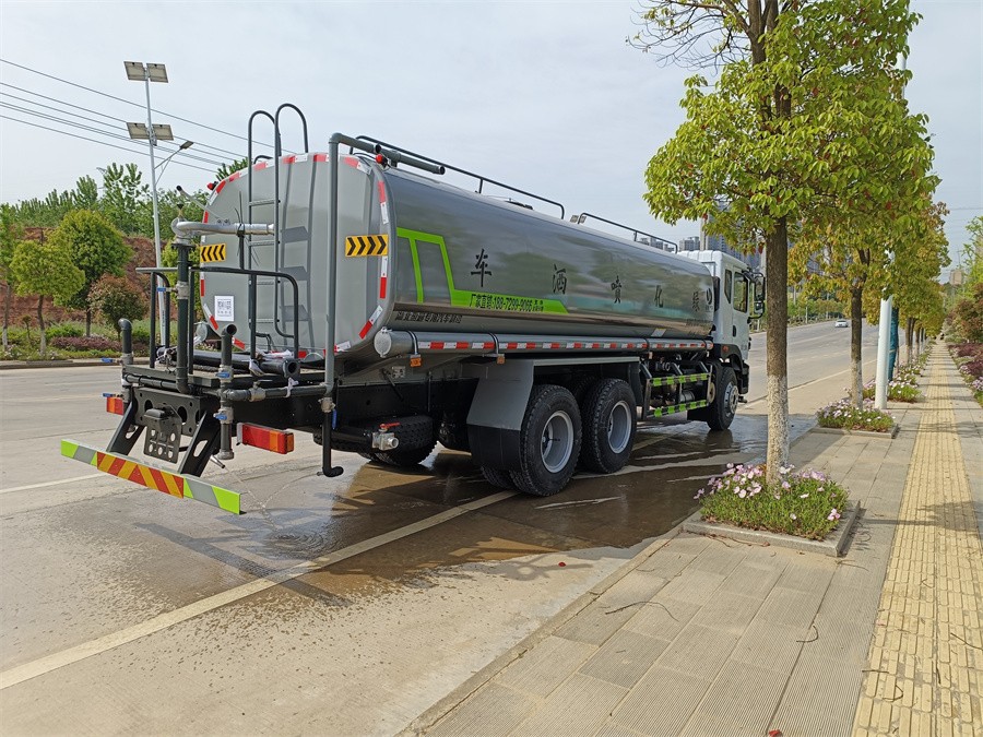 22方灑水車產(chǎn)品標(biāo)配前噴(鴨嘴)、后沖、后灑、側(cè)噴、后置式工作 平臺,灑水車平臺上配置綠化水炮(可 360°旋轉(zhuǎn),既可以調(diào)成柱狀,也可 以調(diào)成霧狀,更可以調(diào)成直沖狀、大雨、中雨、小雨、毛毛雨),配 備優(yōu)質(zhì)大功率專用灑水泵(可自吸自排,可從河里或池塘抽水到罐體), 取力器,雜物過濾網(wǎng),消防接口,自流球閥系統(tǒng)、取力器、球閥、濾網(wǎng) 均為國家標(biāo)準(zhǔn)產(chǎn)品,主管道加粗,法蘭墊、法蘭盤加厚,大通徑球閥。 整體具備性能優(yōu)良安全可靠、效率高、流量大、維修方便等特點(diǎn)