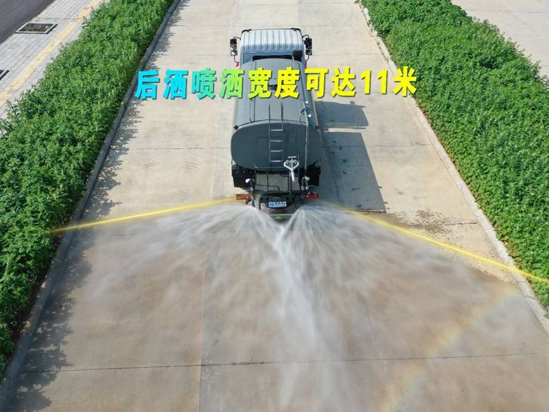 東風(fēng)福瑞卡綠化噴灑車-9噸綠化灑水車報價-綠化灑水車生產(chǎn)廠家專用功能配置:罐體實際容積約為9立方米,采用武鋼優(yōu)質(zhì)碳鋼板卷壓成型。配備專用灑水泵,自吸自排,前噴后灑、側(cè)噴、后工作平臺及灑水高壓炮。灑水泵自吸高度為6米左右,整車灑水寬度14米左右,后工作平臺水炮可調(diào)成:直沖狀、大雨、中雨、小雨、毛毛雨,有效射程≥28米,整車帶接頭、水位計,自流閥。后工作平臺主管道有一個一寸的澆花接口,附送23米水管,1個爬梯,兩側(cè)及后保險杠。