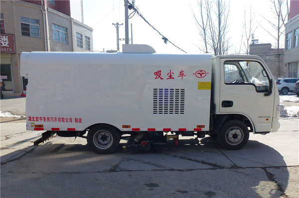 該吸塵車是采用躍進型國五二類原廠汽車底盤改裝,加裝副發(fā)動機、風機、清水箱、垃圾箱、中置吸盤,工作視頻探頭,自動脈沖清理功能,液壓系統(tǒng)、專用裝置電控系統(tǒng)和副車架等改裝而成。