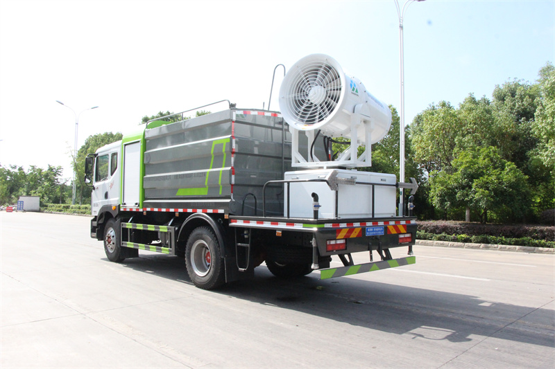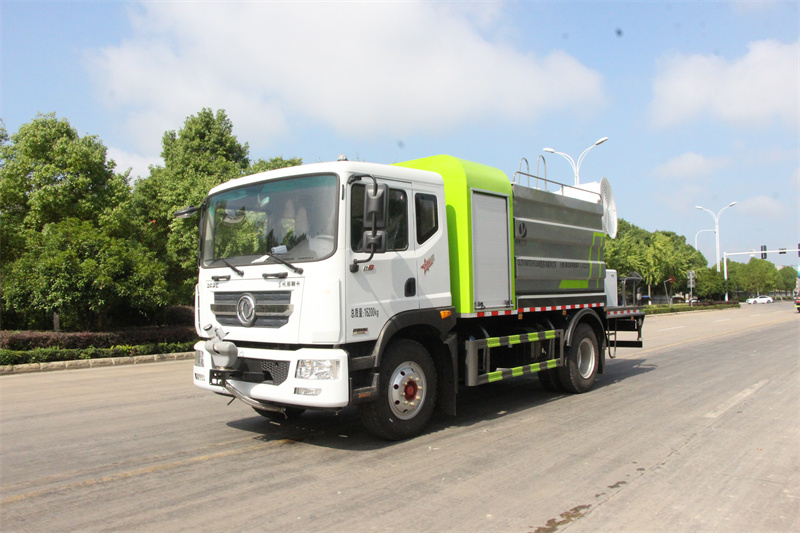 東風(fēng)12方大型霧炮灑水車產(chǎn)品簡述:縱昂牌 CLT5181TDYEQ6A 型多功能抑塵車標(biāo)配前噴(鴨嘴)、后 對(duì)沖、后灑、側(cè)噴、后置式工作平臺(tái),平臺(tái)上配置綠化水炮(可 360°旋轉(zhuǎn),既 可以調(diào)成柱狀,也可以調(diào)成霧狀),配備優(yōu)質(zhì)大功率專用灑水泵(可自吸自排, 可從河里或池塘抽水到罐體),取力器,雜物過濾網(wǎng),消防接口,自流球閥系統(tǒng)、 取力器、球閥、濾網(wǎng)均為國家標(biāo)準(zhǔn)產(chǎn)品,主管道加粗,法蘭墊、法蘭盤加厚, 大通徑球閥。整體具備性能優(yōu)良安全可靠、效率高、流量大、維修方便等特點(diǎn)