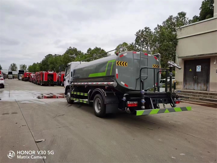 東風多利卡9.35噸灑水車產品標配前噴(鴨嘴)、后沖、后灑、側噴、后置式工作 平臺,平臺上配置綠化水炮(可 360°旋轉,既可以調成柱狀,也可 以調成霧狀,更可以調成直沖狀、大雨、中雨、小雨、毛毛雨),配 備優(yōu)質大功率專用灑水泵(可自吸自排,可從河里或池塘抽水到罐體), 取力器,雜物過濾網,消防接口,自流球閥系統、取力器、球閥、濾網 均為國家標準產品,主管道加粗,法蘭墊、法蘭盤加厚,大通徑球閥。 整體具備性能優(yōu)良安全可靠、效率高、流量大、維修方便等特點。