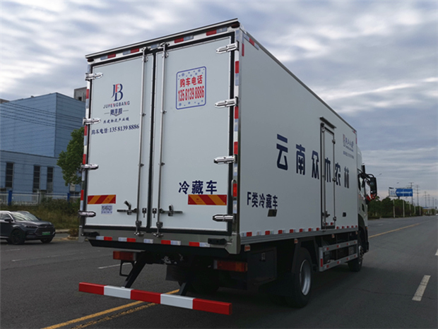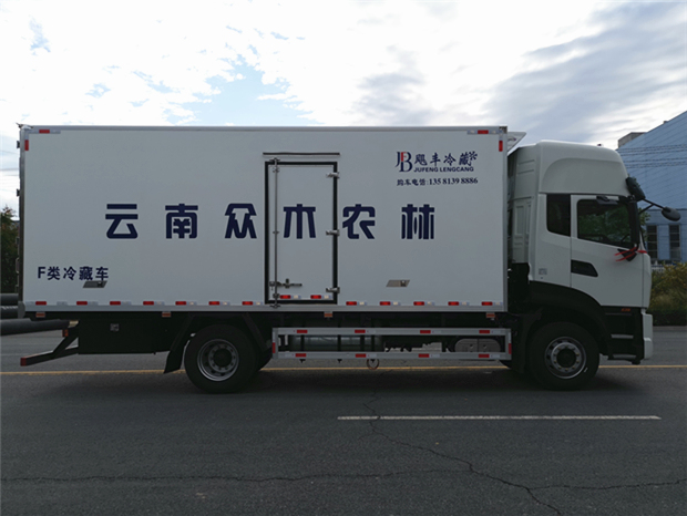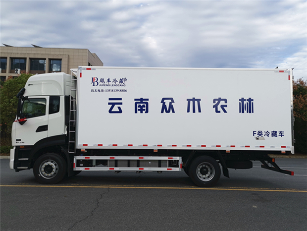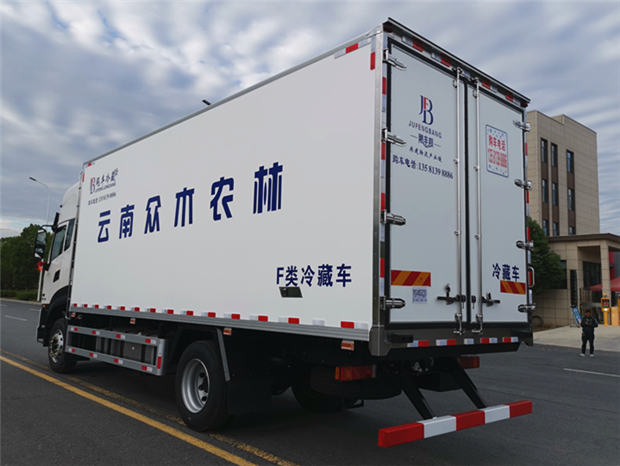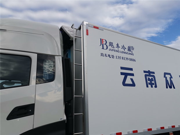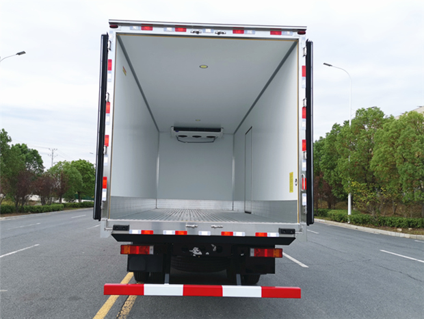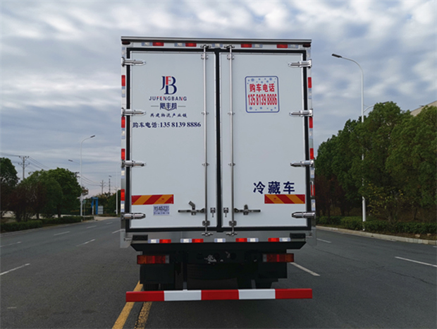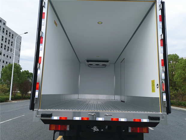 車廂配置為:《斷橋隔溫工藝、整體結(jié)構(gòu)框架》;內(nèi)外面料為3mm新款玻璃鋼;側(cè)板+頂板:全密封雙組合聚氨酯膠粘連;廂體厚度為8cm;頂板10cm厚,底板12cm厚,最新款鋁合金包邊型材;型材局部厚度為4mm(鋼制鉚釘加固);廂體內(nèi)部采用2個(gè)LED照明燈及廂體示寬燈;后門框?yàn)?mm厚不銹鋼材質(zhì);門框密封條為三元乙丙橡膠材質(zhì);加厚型不銹鋼合頁及鎖件;副梁為Q700車用大梁鋼;15mm厚大梁墊皮;加裝防撞膠塊;不銹鋼門鎖件,配后雙開門。底板為加厚鋁合金通風(fēng)槽滿焊,帶30cm高新型圍裙,副駕駛一側(cè)居中靠前開單側(cè)門,鋁合金側(cè)防護(hù),不銹鋼冷機(jī)維護(hù)爬梯,帶大工具箱一個(gè)。帶剎車淋水器,前后淋水分別控制。